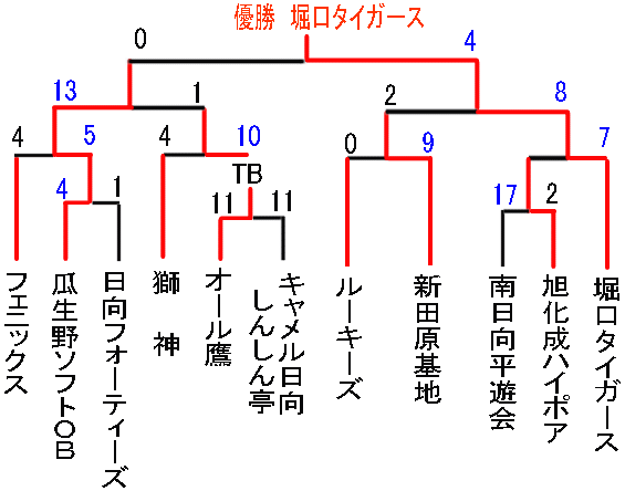 | 南日向平遊会 | 3 | 0 | 8 | 6 | × | 17 |