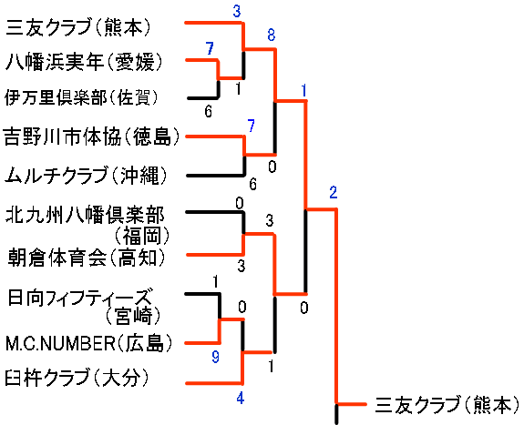 | 三友クラブ | 0 | 2 | 0 | 0 | 0 | 0 | × | 2 |