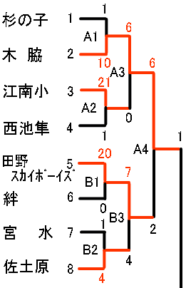 | 江南小 | 2 | 0 | 4 | 15 | × | 21 |