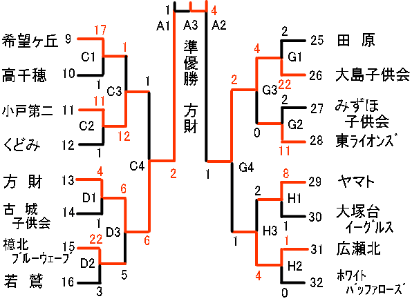 | 希望ヶ丘 | 3 | 2 | 8 | 4 | × | 17 |