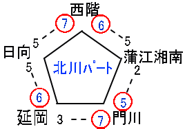 | 門川 | 0 | 0 | 3 | 2 | 0 | 0 | 5 |
