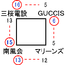 | 三桜電設 | 1 | 0 | 3 | 0 | 6 | 6 | 16 |