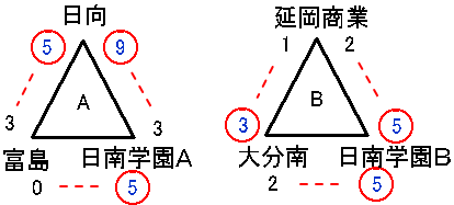 | 日南学園B | 1 | 1 | 3 | 0 | × | 5 |