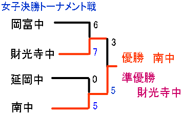 | 財光寺中 | 2 | 0 | 1 | 0 | 3 | 0 | × | 6 |
