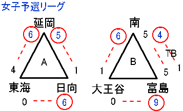| 岡富中 | 1 | 0 | 4 | 1 | 0 | 6 |