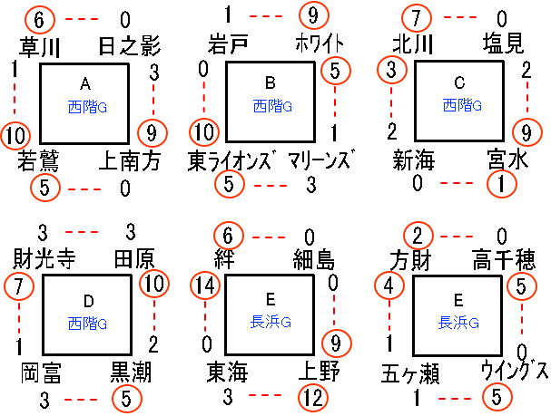 | 高千穂 | 3 | 0 | 2 | × | 5 |