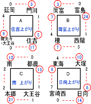 | 門川 | 1 | 0 | 1 | 1 | × | 3 |