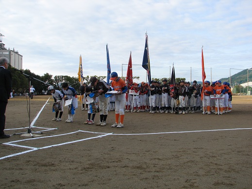 6年生は小学校最後の大会となり、開会式では、今までソフトボールに励んできたことと、