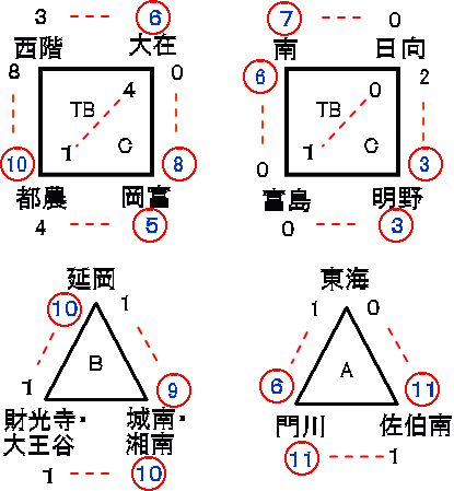 | 城南・湘南中 | 4 | 0 | 2 | 0 | 3 | 9 |