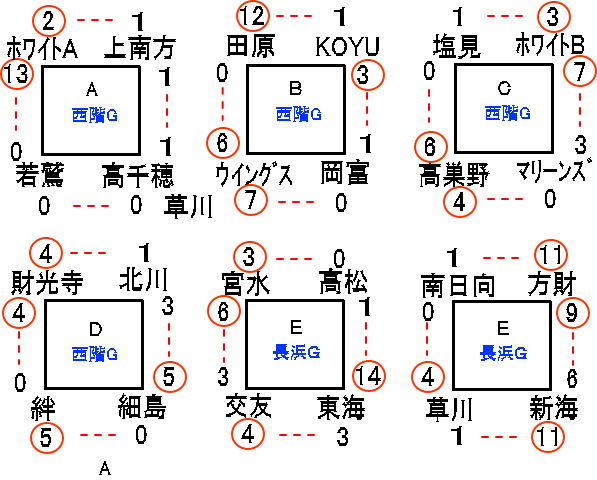 | 高巣野 | 4 | 0 | 2 | 0 | 0 | 6 |