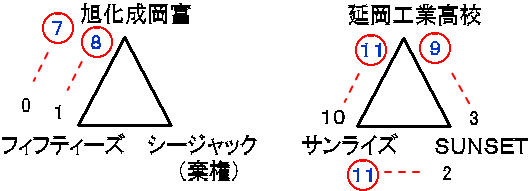 | サンライズ | 1 | 2 | 0 | 4 | 0 | 4 | 11 |