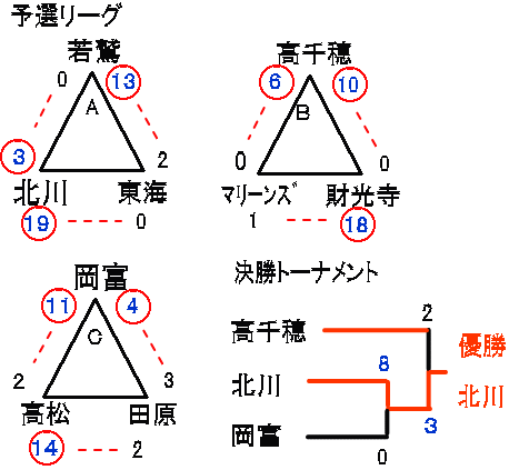 | 北川 | 10 | 9 | × | 19 |