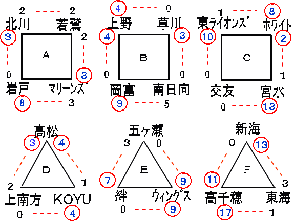 | 上野 | 2 | 2 | 0 | 0 | × | 4 |