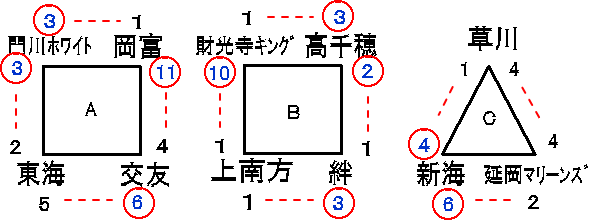 | 新海シャークス | 0 | 0 | 0 | 0 | 0 |