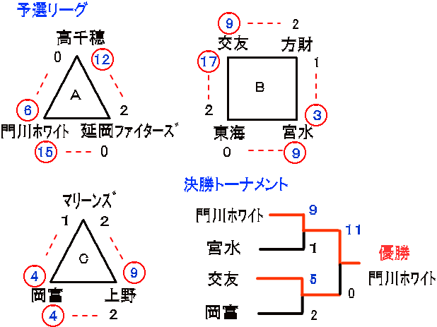 | 門川ホワイト | 3 | 1 | 2 | 0 | × | 6 |