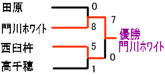 | 門川ホワイト | 0 | 2 | 0 | 6 | × | 8 |