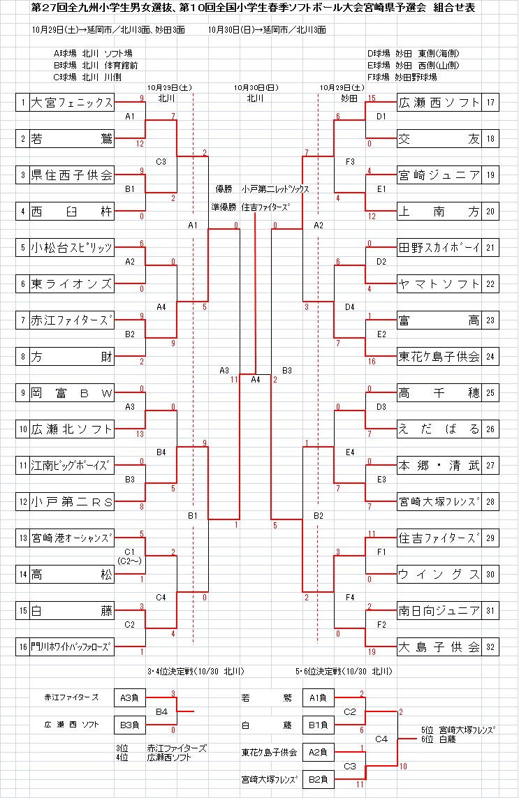 | 赤江ファイターズ | 2 | 1 | 0 | 0 | × | - | - | 3 |