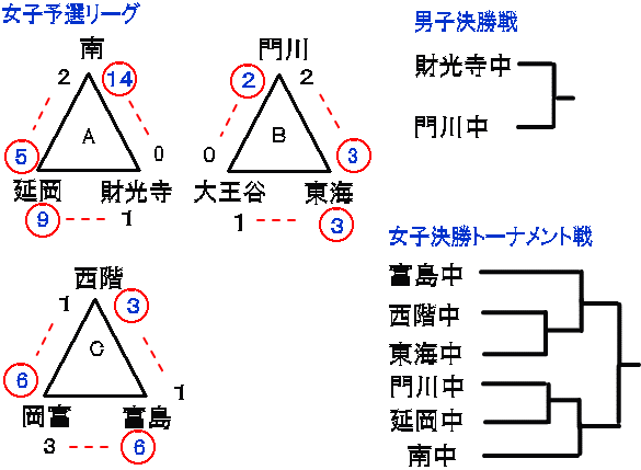 | 富島中 | 1 | 1 | 0 | 3 | 0 | 1 | 6 |