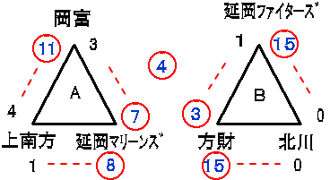 | 岡富 | 5 | 2 | 4 | 0 | 11 |