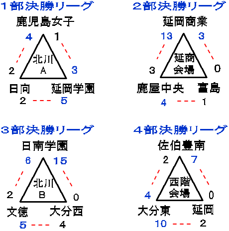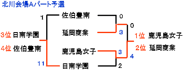 | 鹿児島女子 | 0 | 1 | 1 | 1 | 1 | 0 | × | 4 |