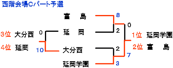 | 大分西 | 2 | 8 | 0 | × | 10 |
