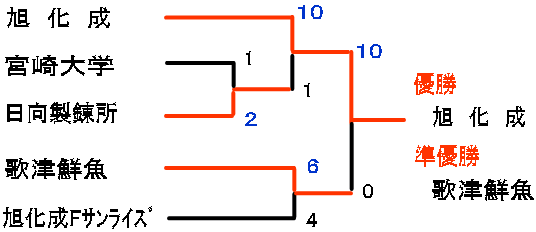 旭化成が優勝、歌津鮮魚が準優勝。 両チームの九州地区予選の活躍を期待します。
