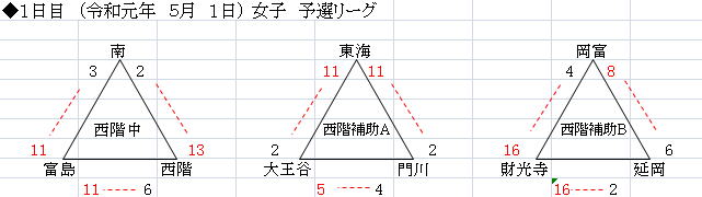 | 西階中 | 0 | 2 | 0 | 2 | 2 | 6 |