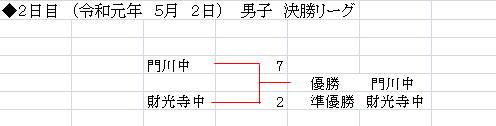 | 財光寺中 | 9 | 7 | 0 | × | 16 |