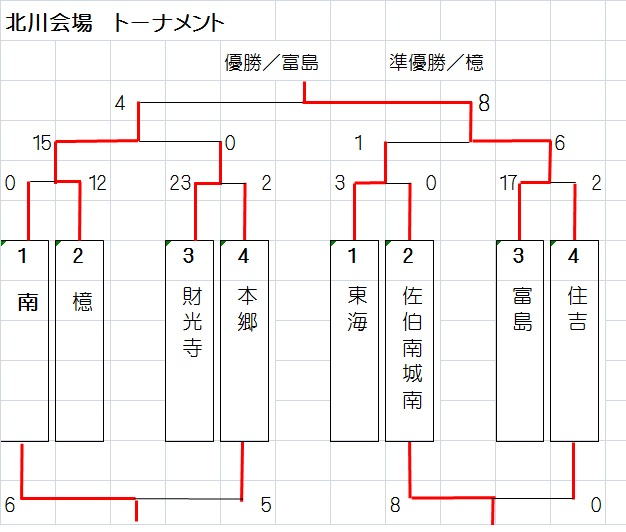 | 富島中 | 0 | 2 | 0 | 3 | 1 | 6 |