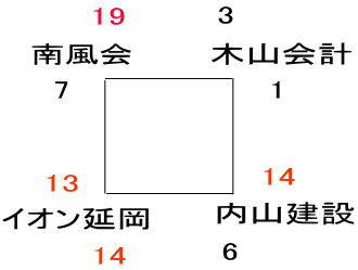 | 内山建設 | 1 | 4 | 3 | 1 | 0 | 1 | 4 | 14 |