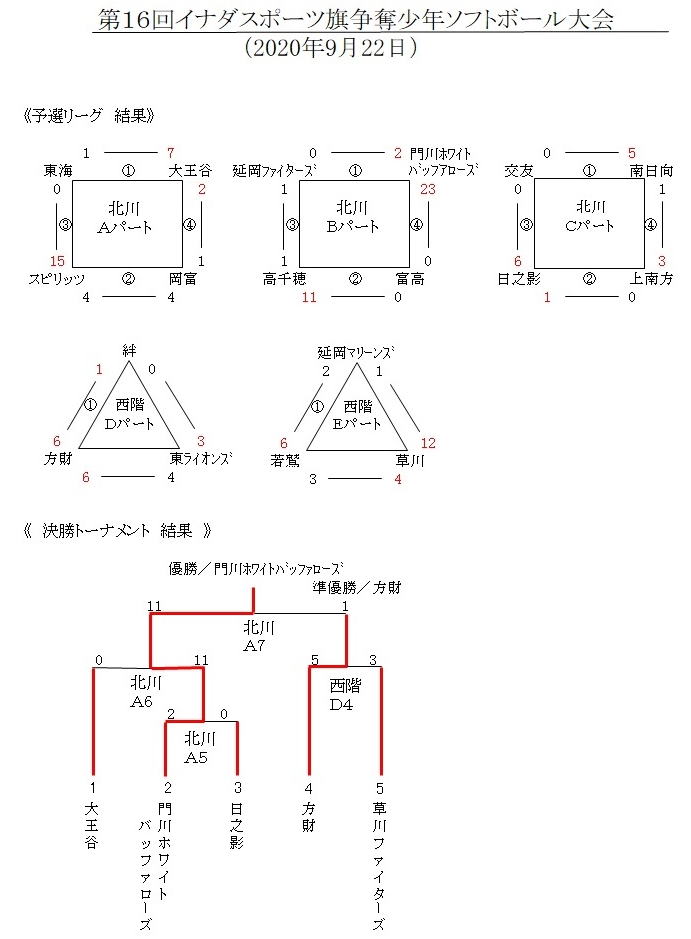 令和2度 第16回イナダスポーツ旗少年ソフトボール大会 (9月22日 北川運動公園、西階運動公園)